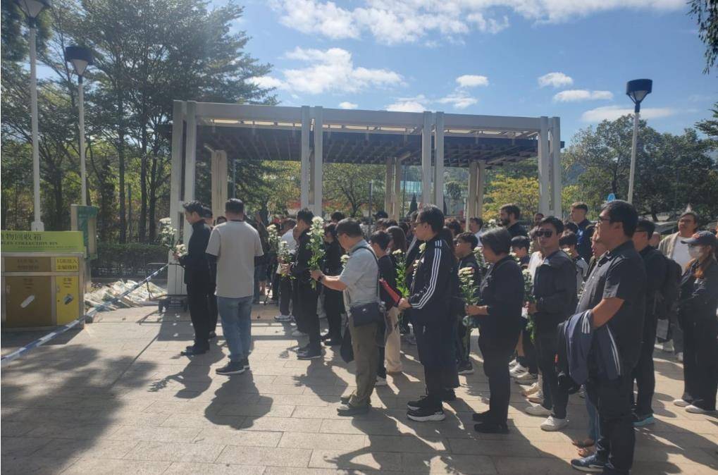 极目新闻记者了解到,不少市民也自发前往事发地宏福苑附近献花,悼念遇难者。一位去宏福苑献花的市民告诉记者,大家都是自发去的,不少人在献花时都哭了。
